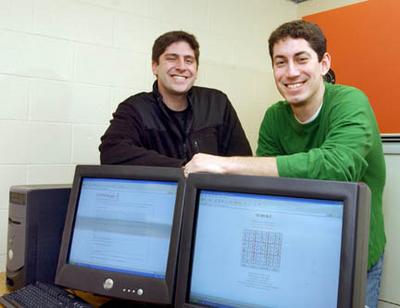 Ian Ricci, left, and Chris Walker-Ray, Springfield Technical Community College students with their computer software that they both developed, on the screens in front of them. Republican Photo: Mark M. Murray Photo location: Springfield Technical Community College 03-10-06 Publish date: 03-12-06 |